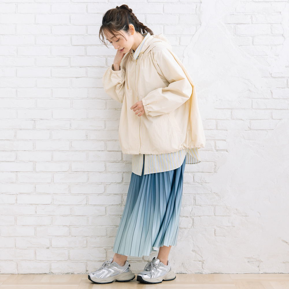 程よい分量感と前後差のあるシルエットで、体のラインを拾いにくく軽快に着こなせます。