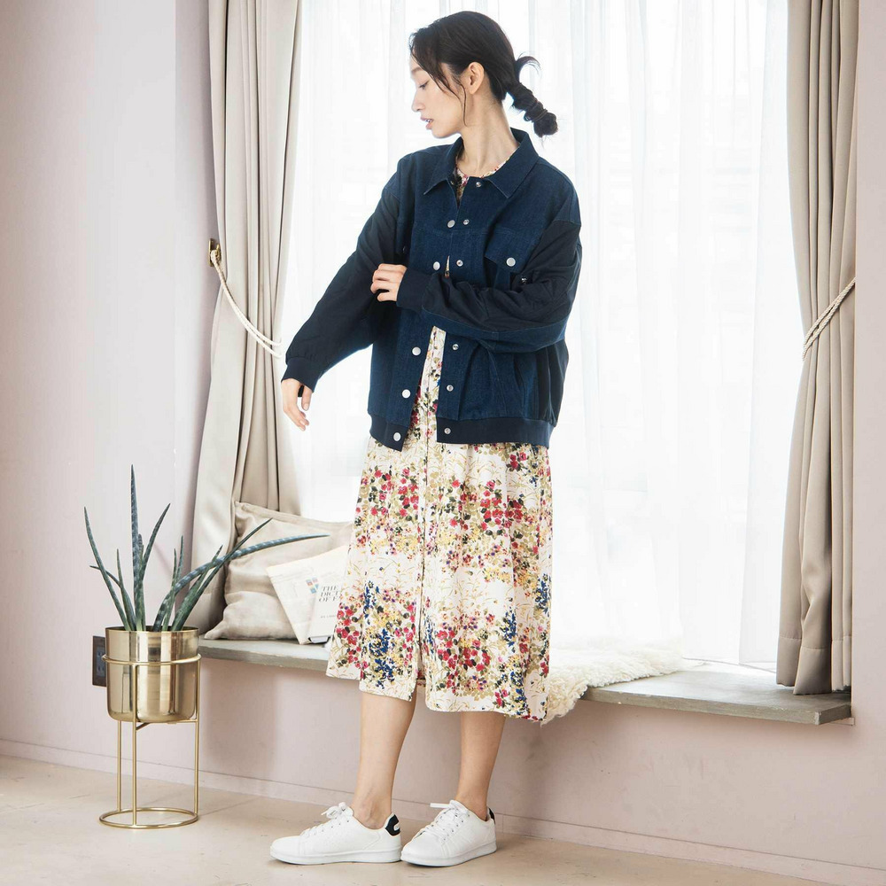 ワンピースやスカートと合わせて、甘さを程よく引き締めるコーデもおすすめです。