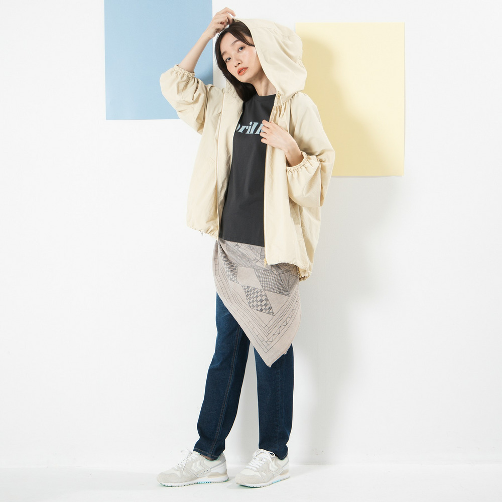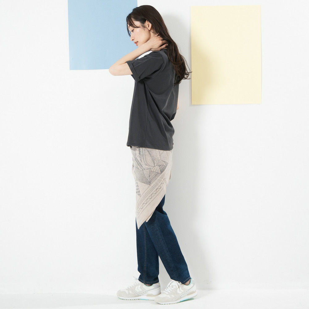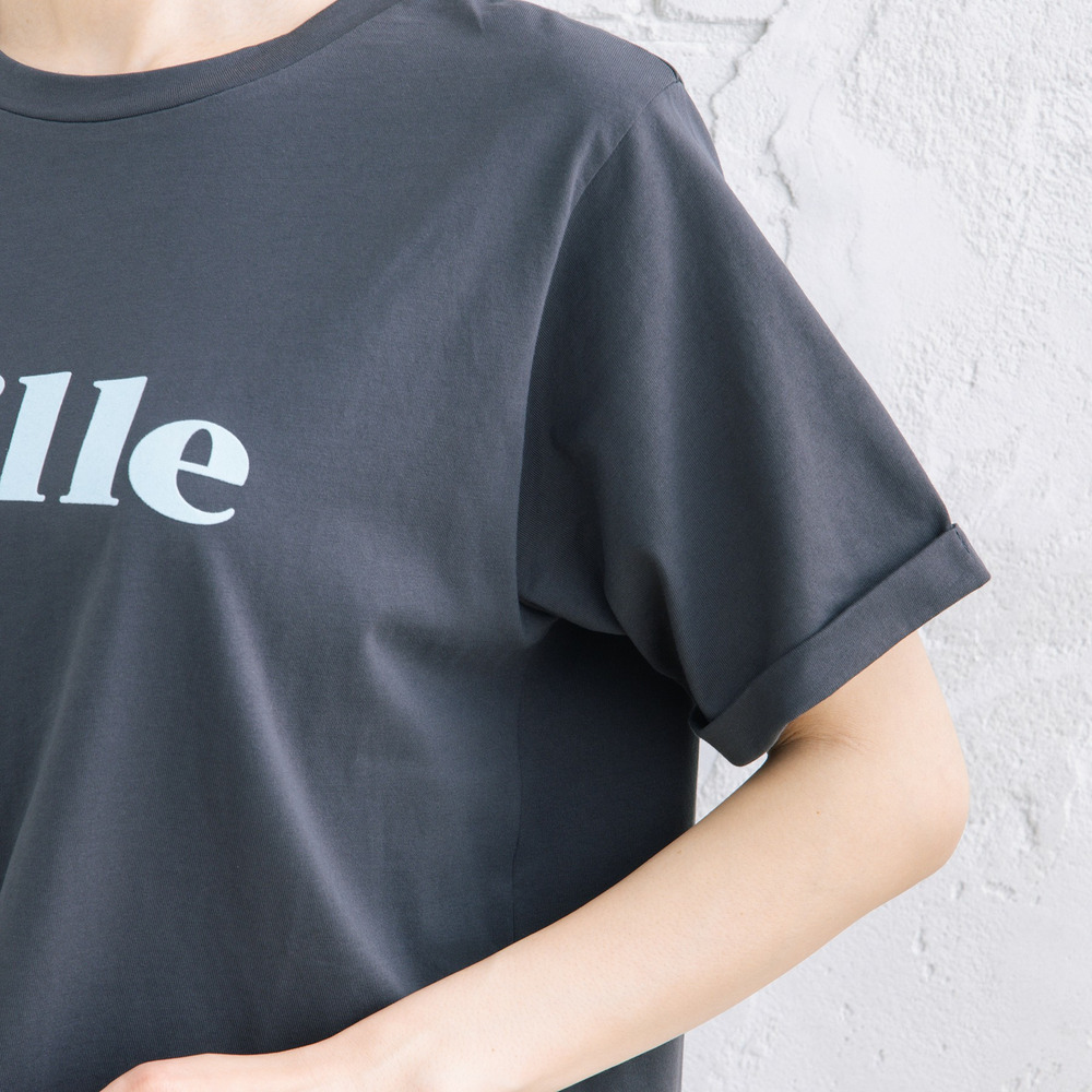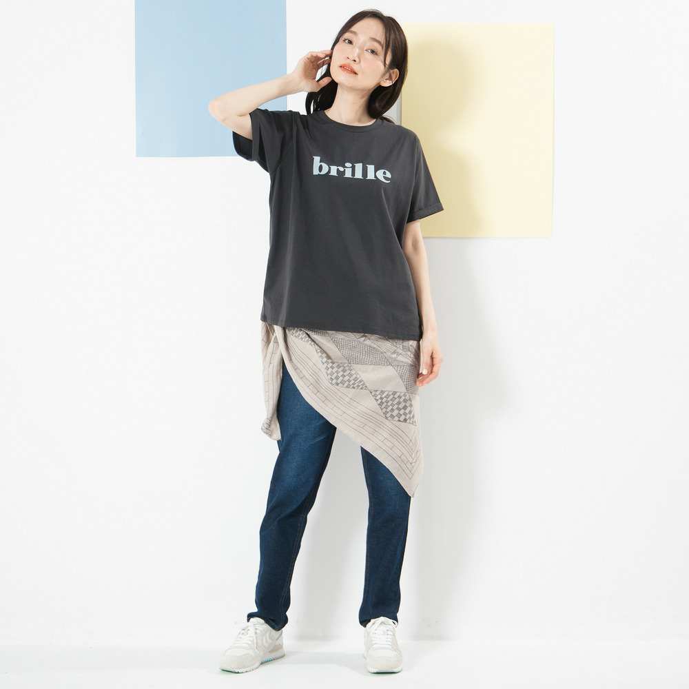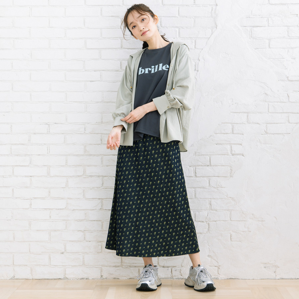 スカートと合わせれば、ロゴTを程よく女性らしく取り入れたスタイルも楽しめます。