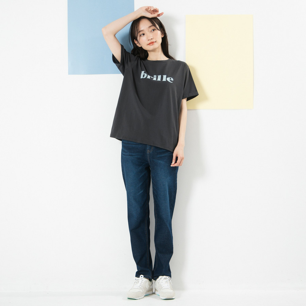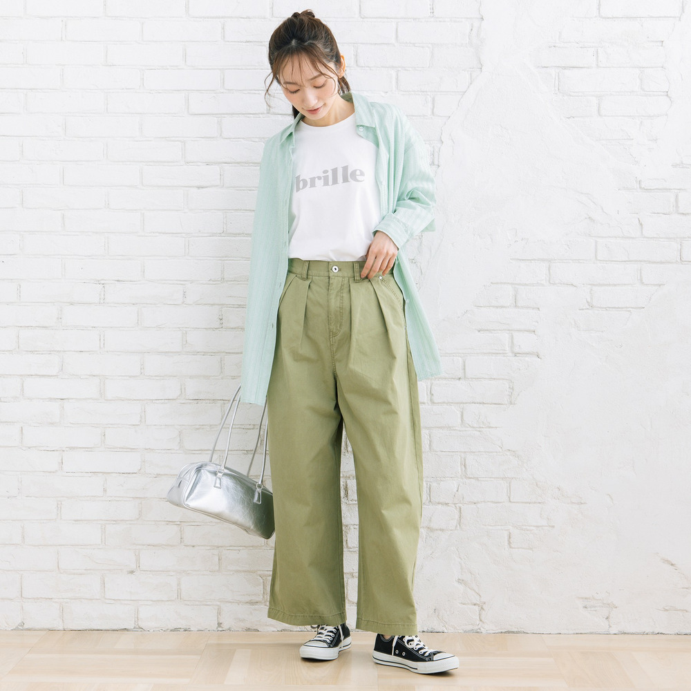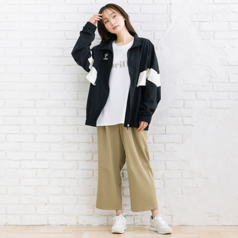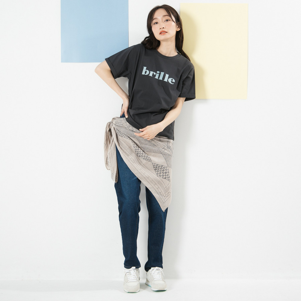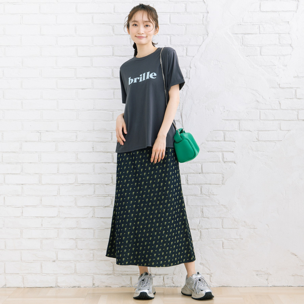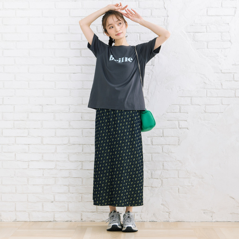 スカートと合わせれば、ロゴTを程よく女性らしく取り入れたスタイルも楽しめます。