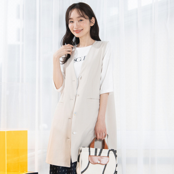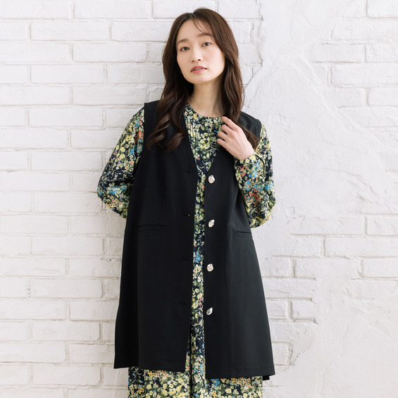 • FONTLAB ナチュラルストレッチノーカラーロングジレ1