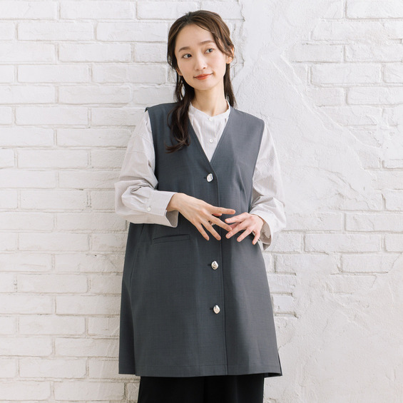 • FONTLAB ナチュラルストレッチノーカラーロングジレ10
