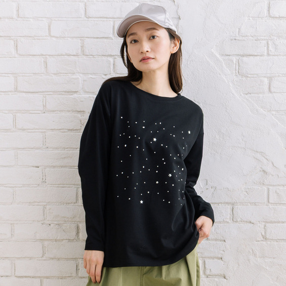 【さりげきらめく、大人のスタースタッズロンT】