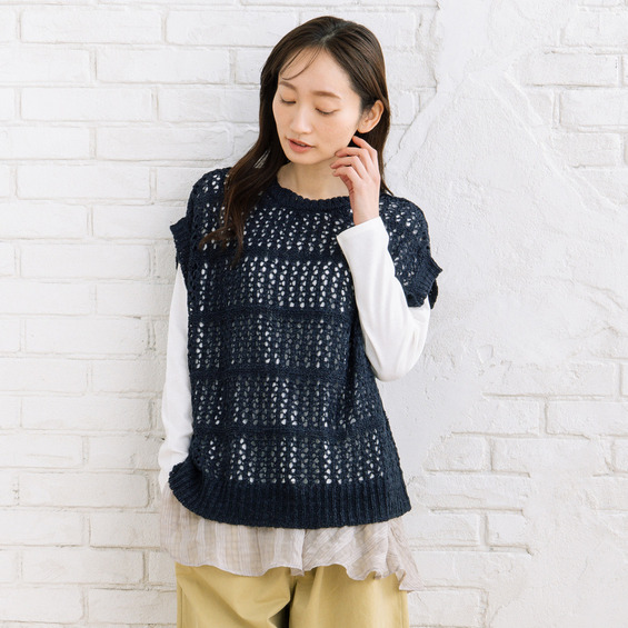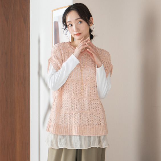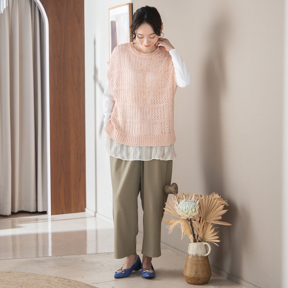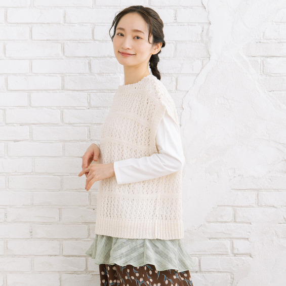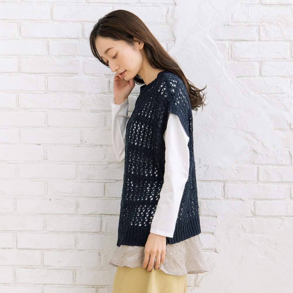 【軽やかな重なりを楽しむ、ニットベストアンサンブル】