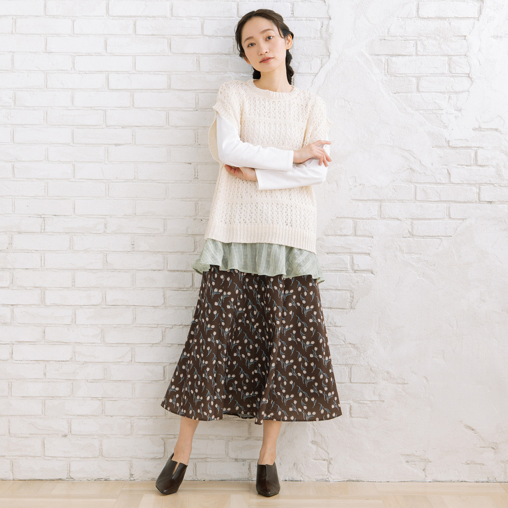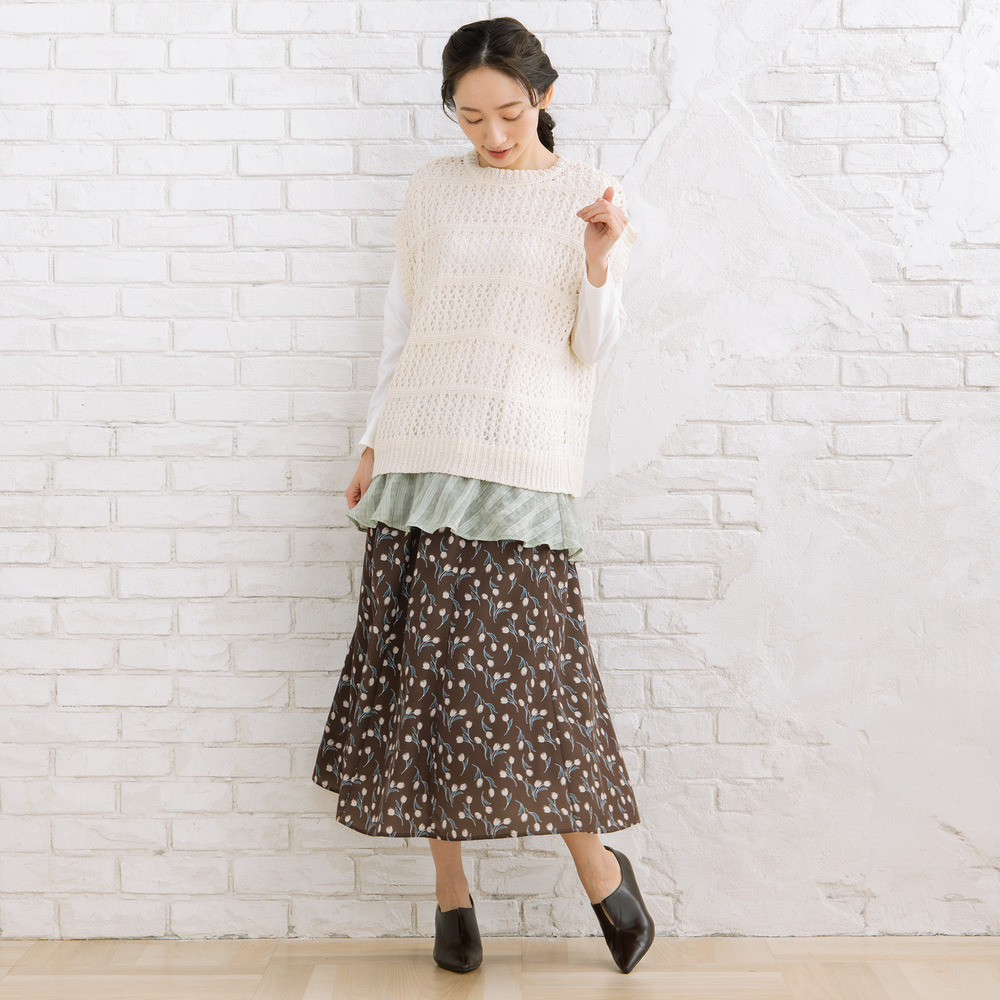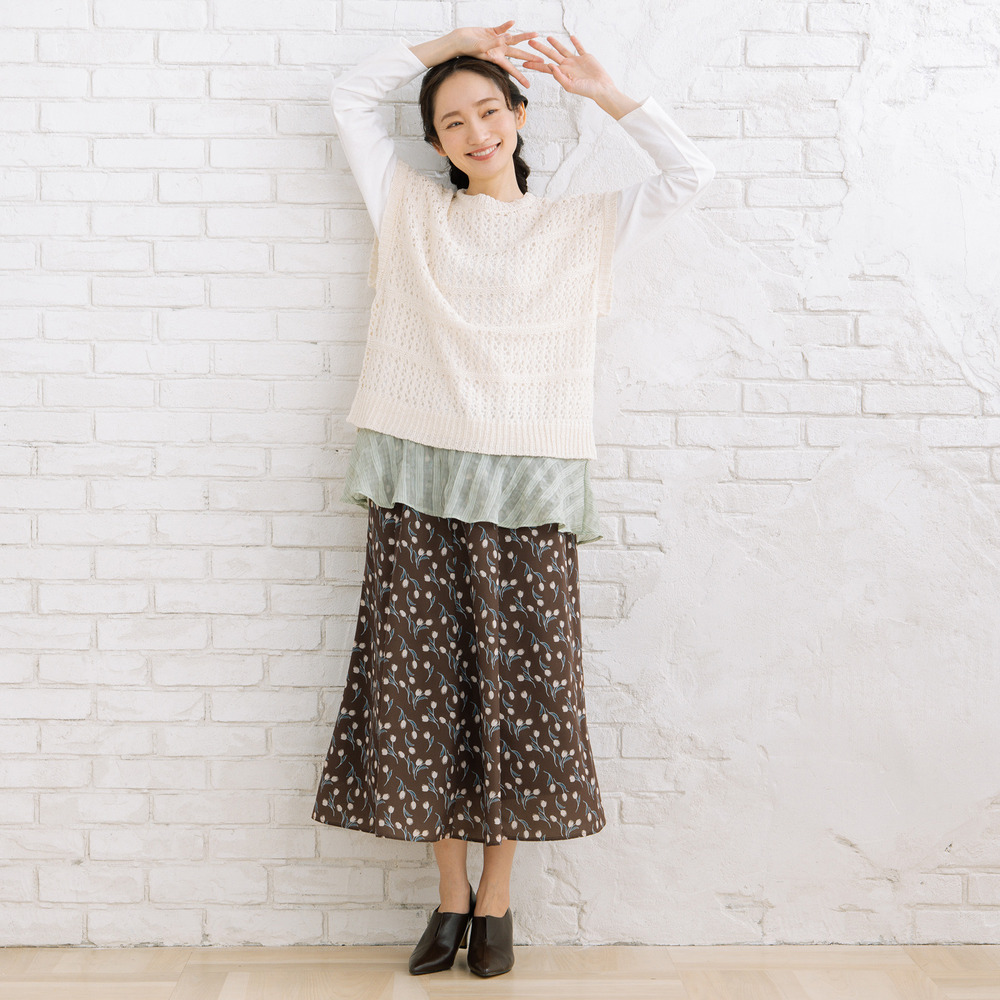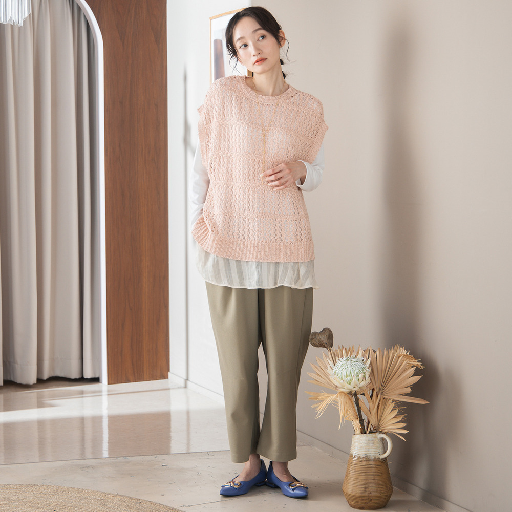 【軽やかな重なりを楽しむ、ニットベストアンサンブル】