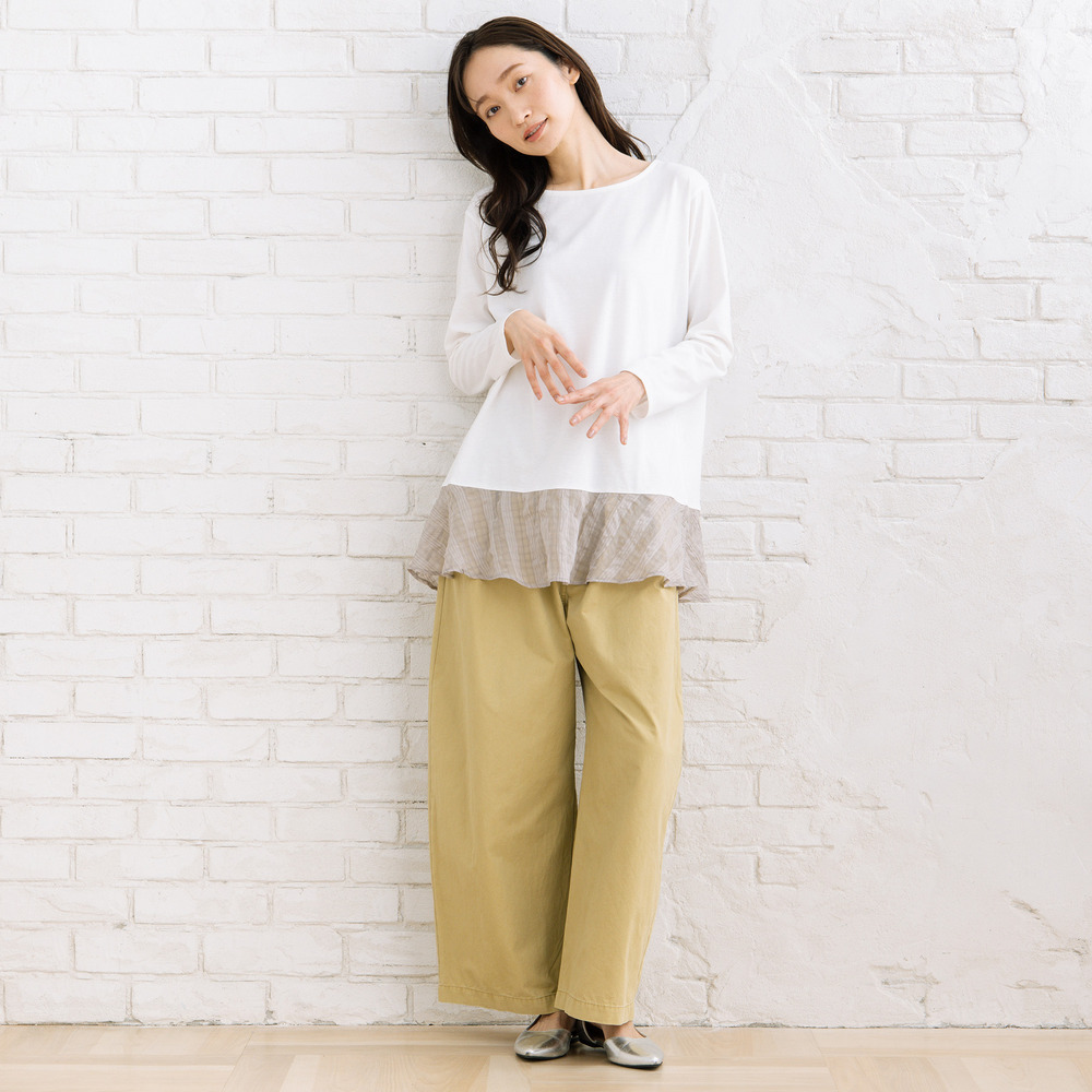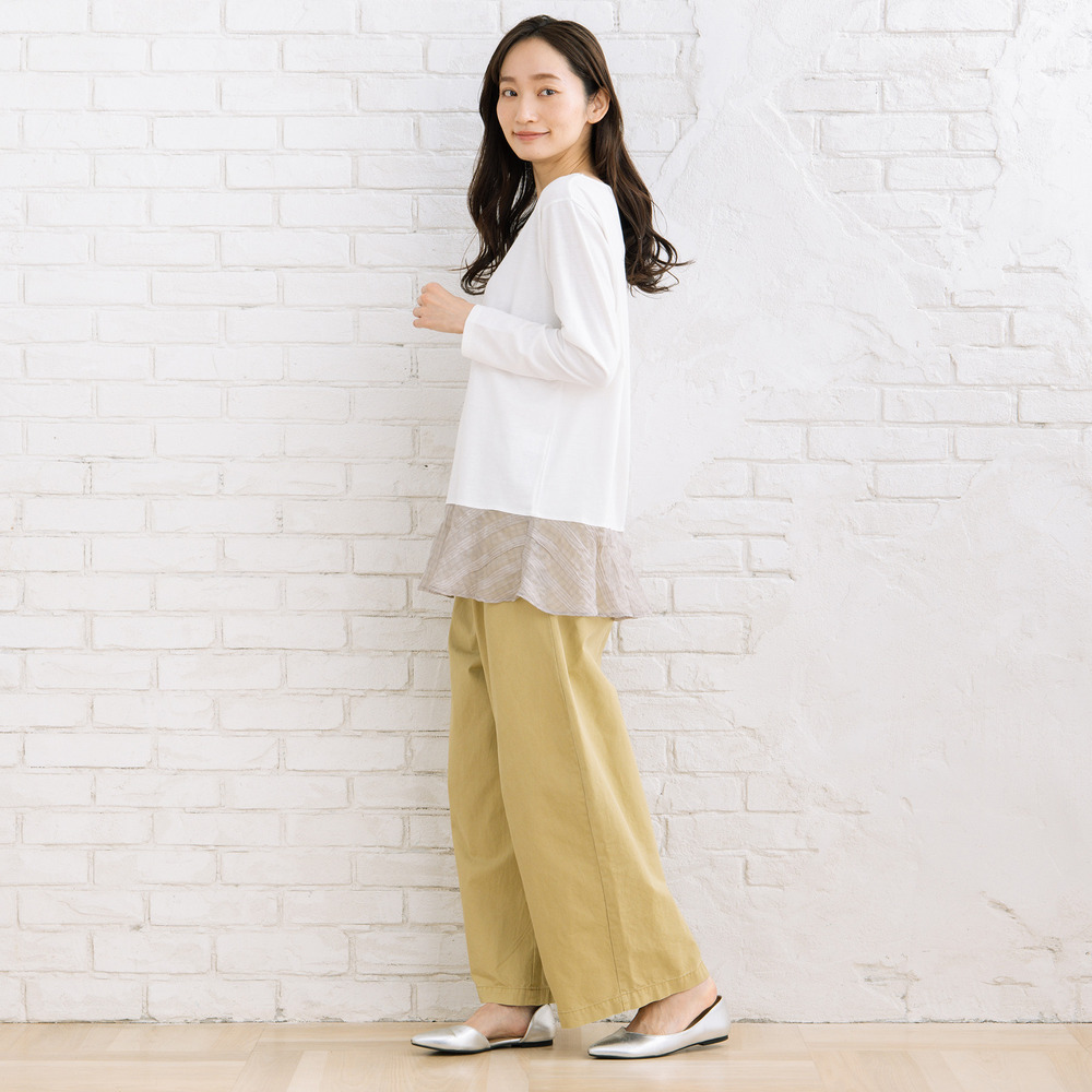 テーパードパンツやワイドパンツと合わせて、バランスよく。