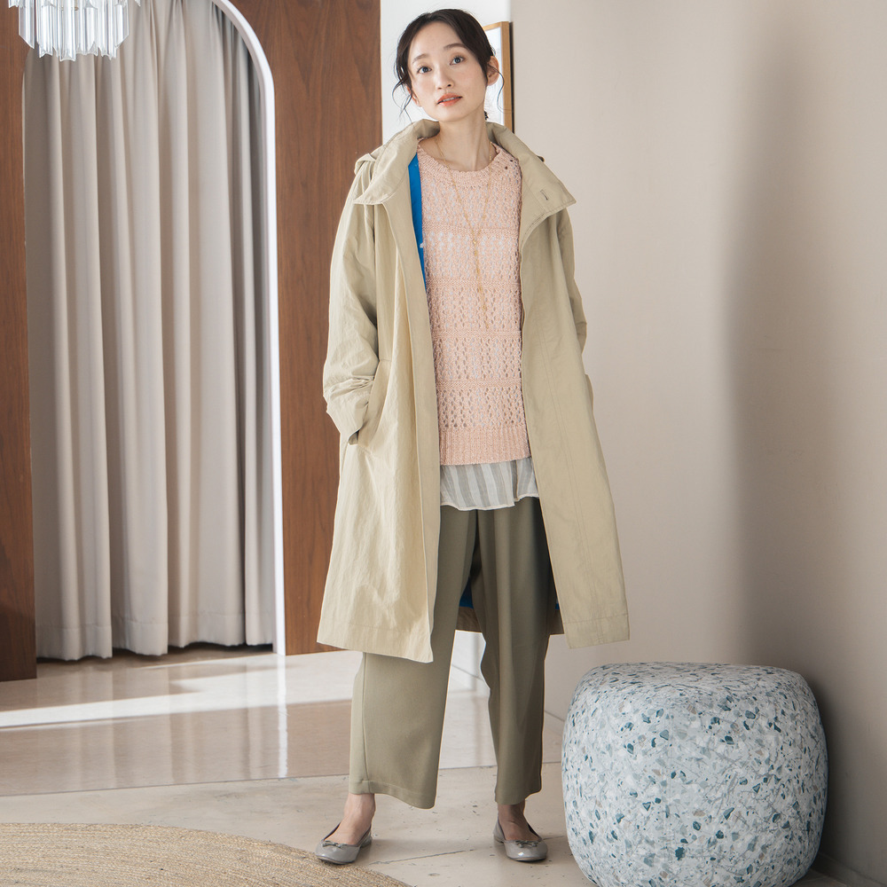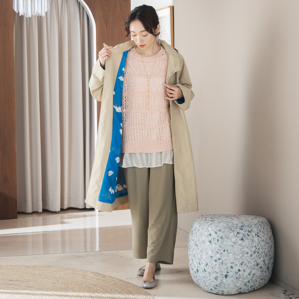 インナーのシアーチェックが、足元まで軽やかな表情をプラスします。