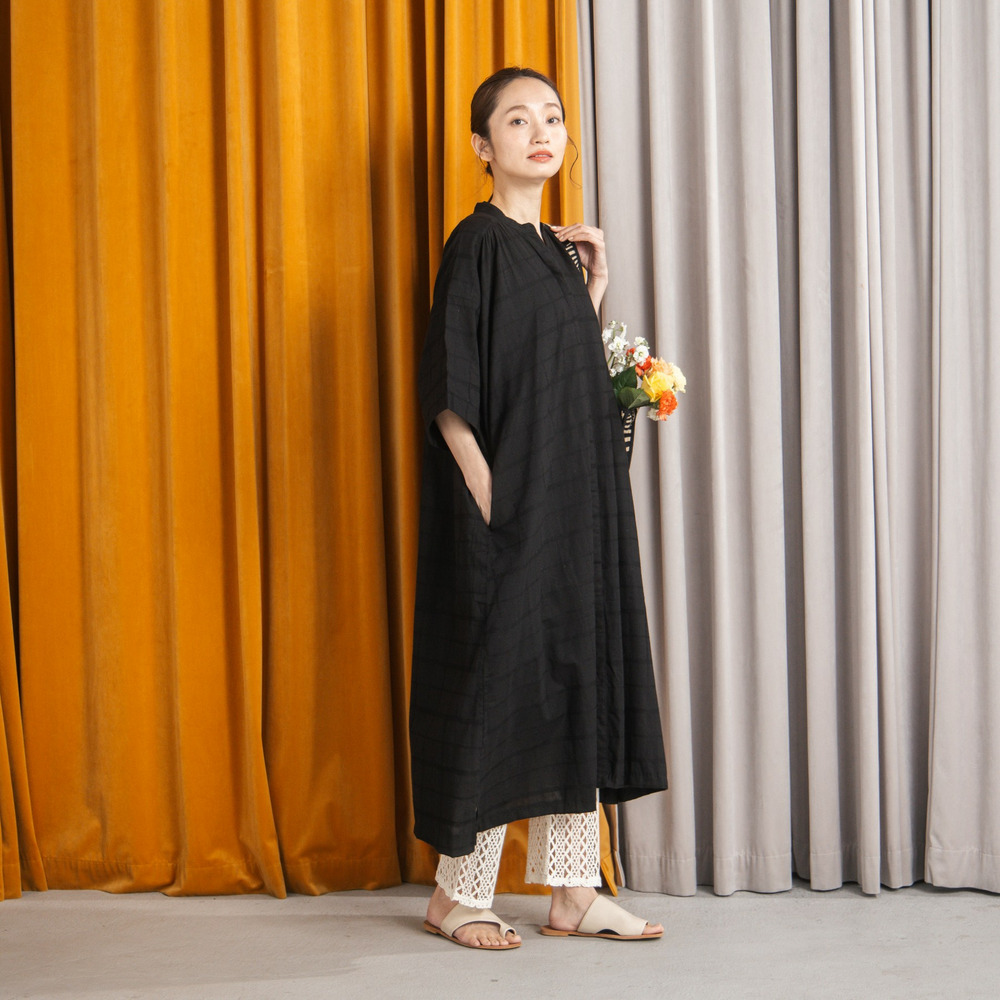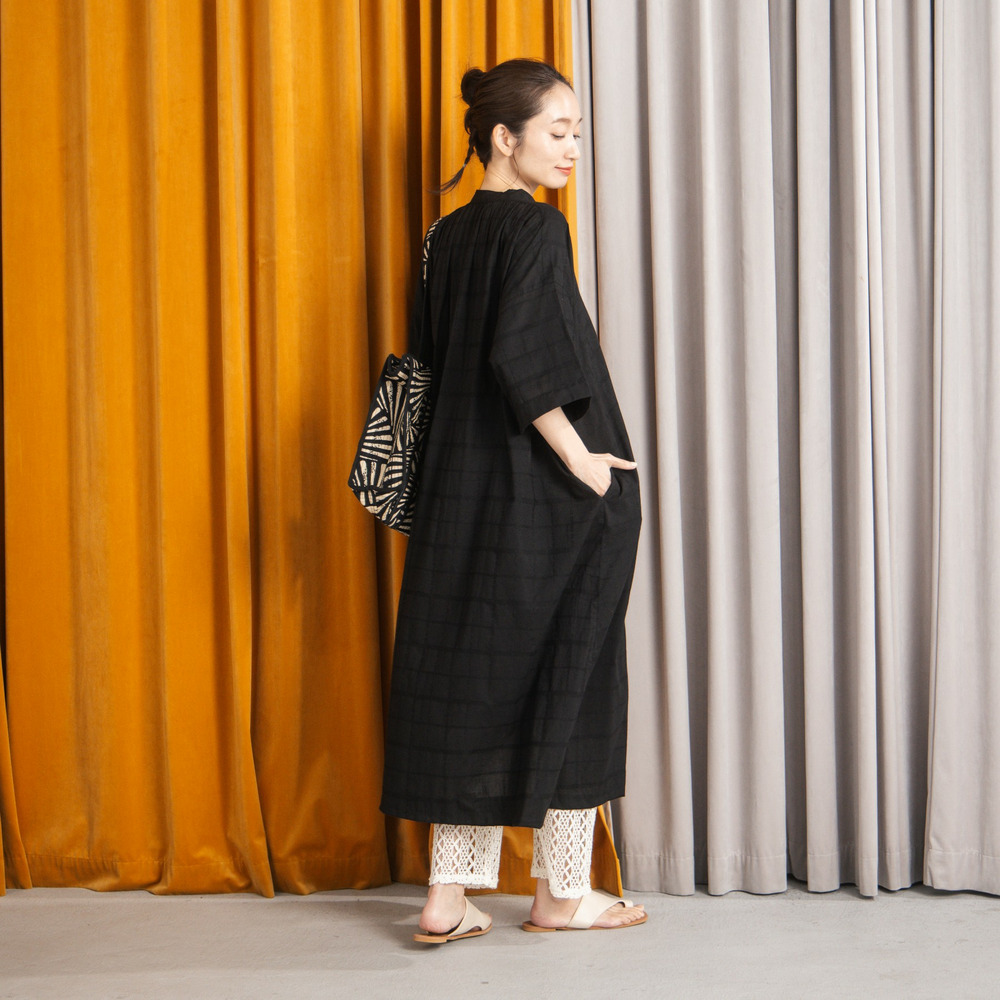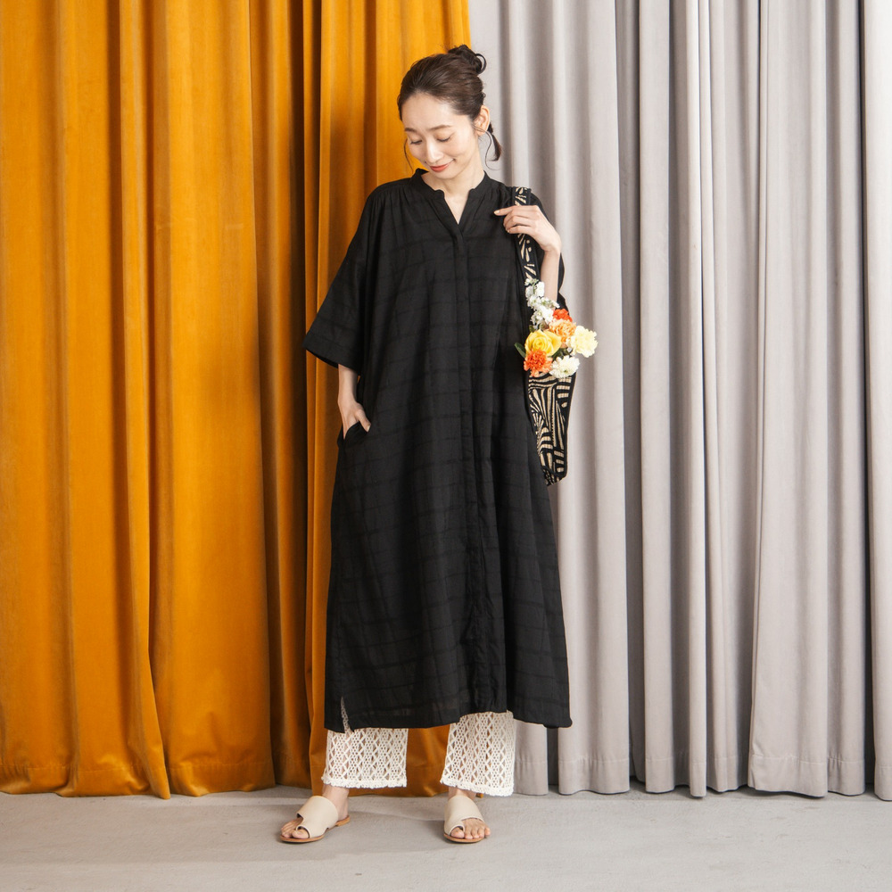 綿100%のやさしい風合いに、さりげないドビーチェックが映えるワンピース。