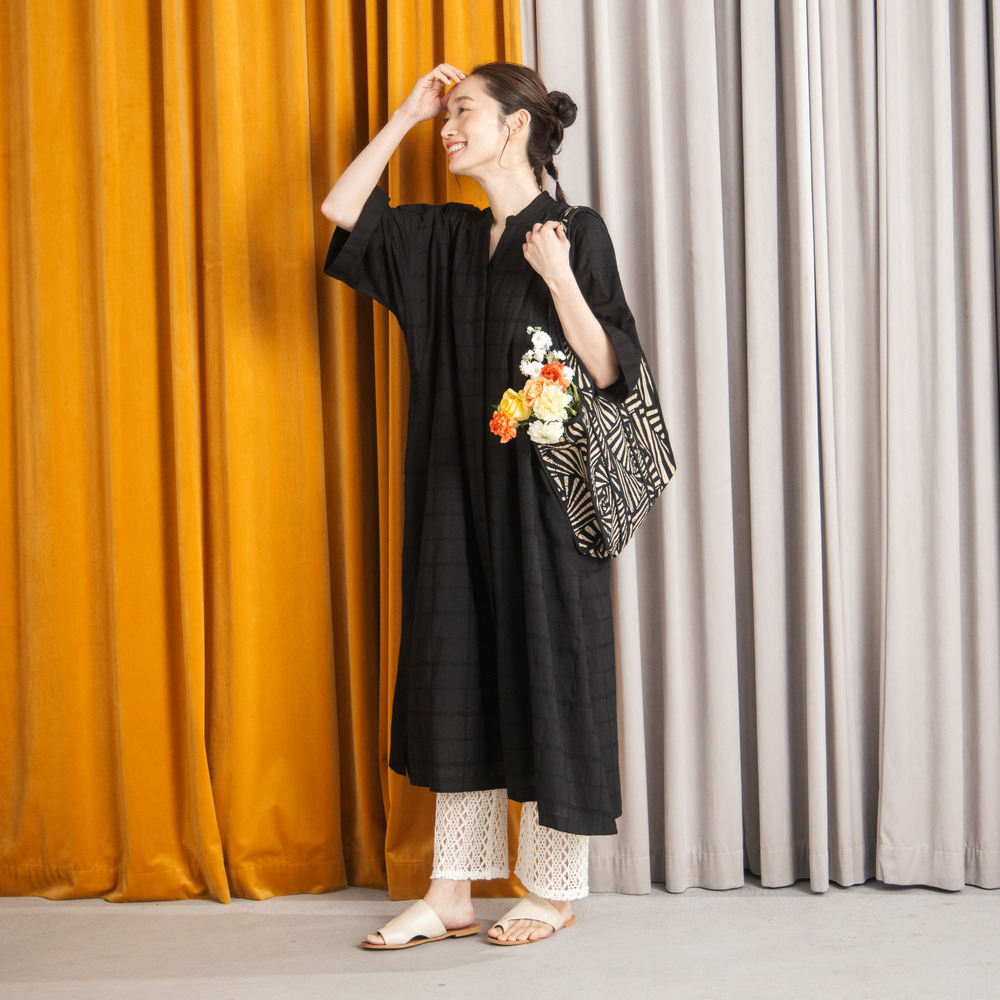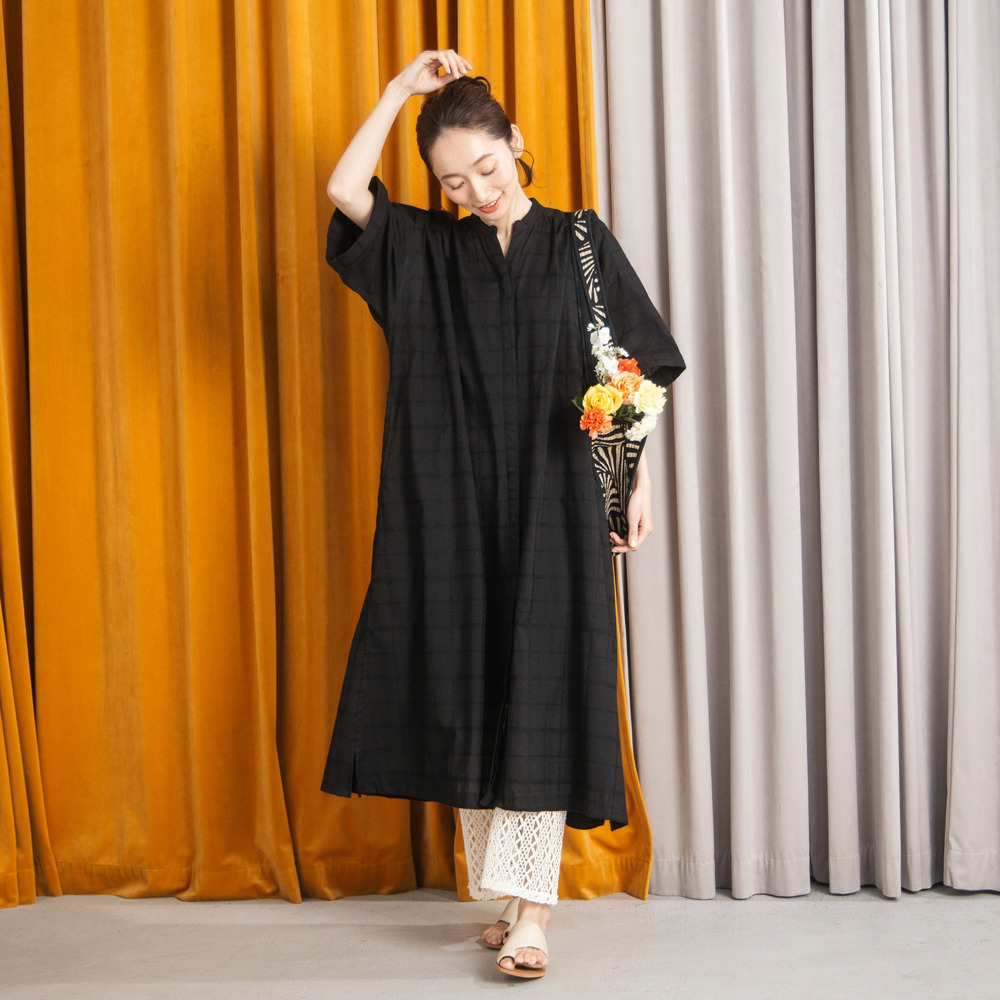 綿100%のやさしい風合いに、さりげないドビーチェックが映えるワンピース。
