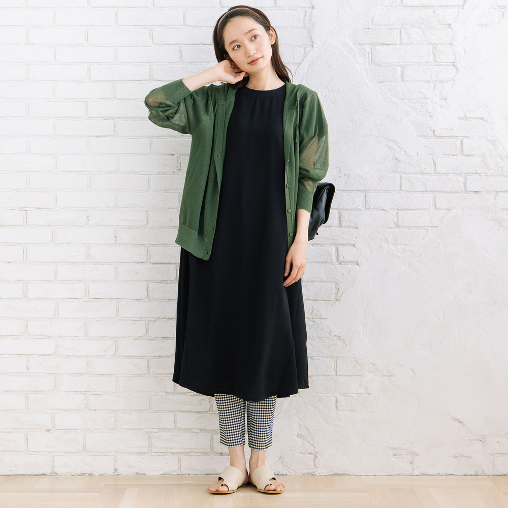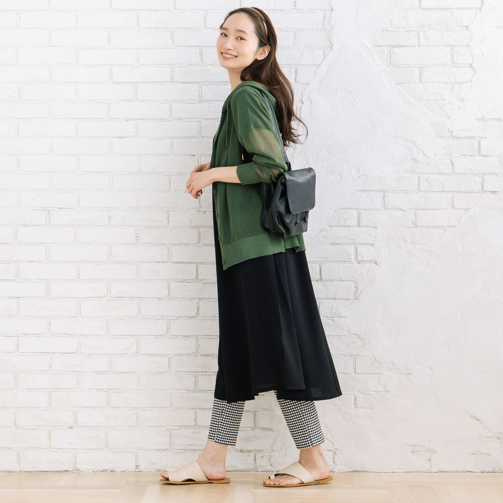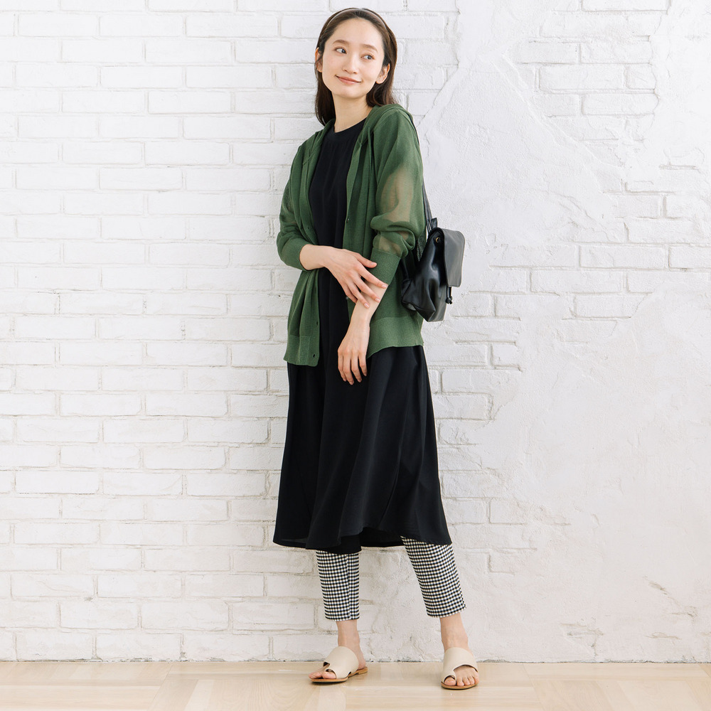 ワンピースに重ねれば、軽やかさのある大人カジュアルにまとまります。