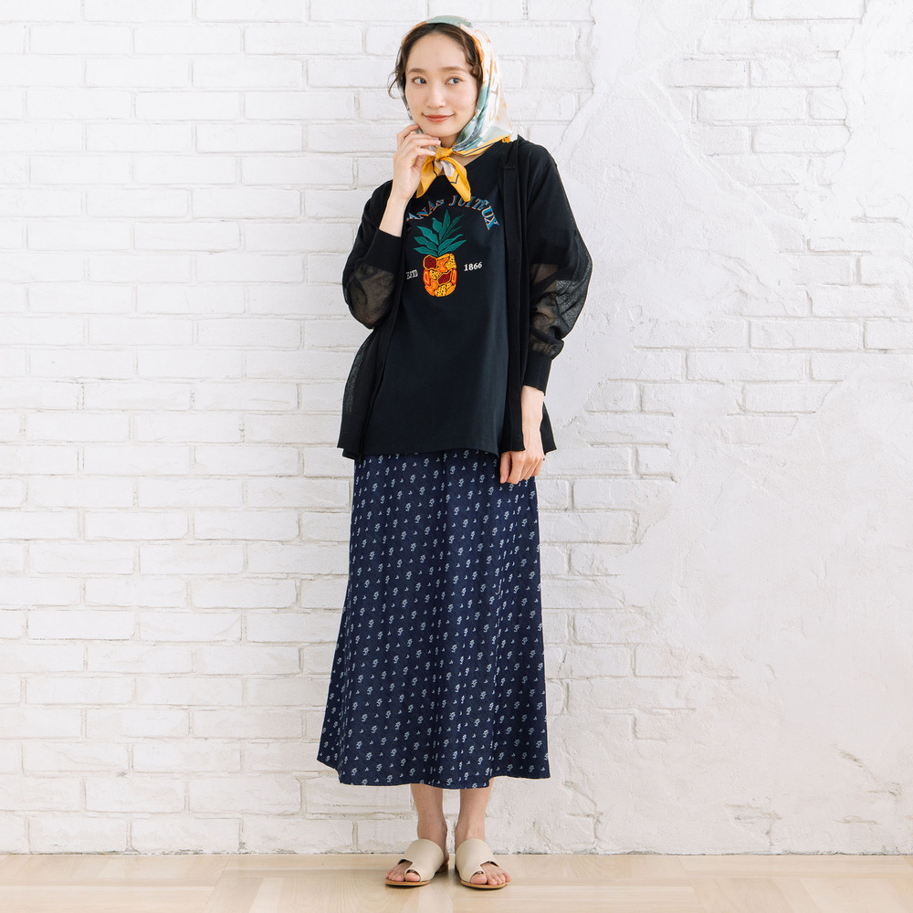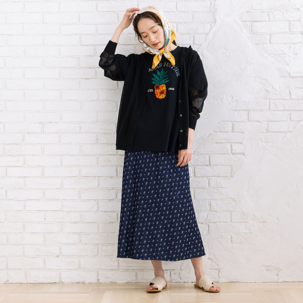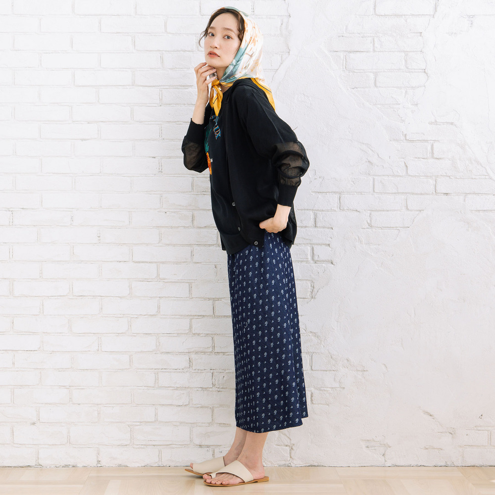 シンプルな装いに重ねるだけで、ぐっとこなれた印象に仕上がる一枚です。