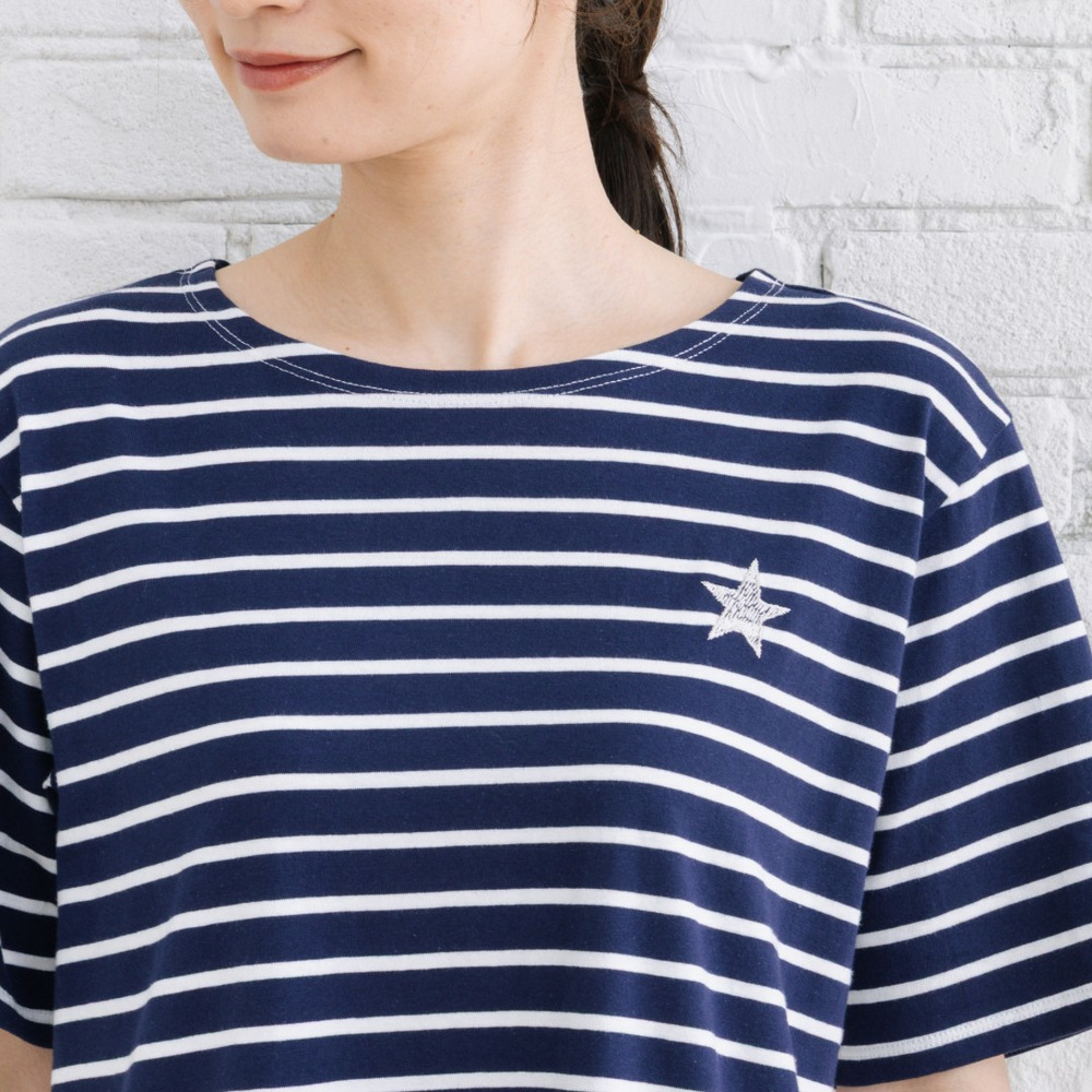 【後ろ姿まで抜かりない、スター刺繍ボーダーカットソー】