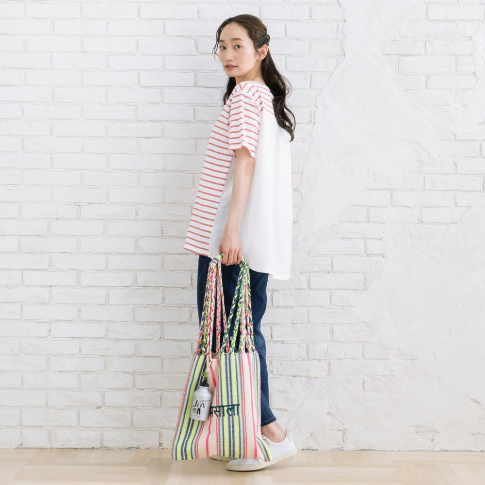 | 素材 | 本体(ボーダー)部分綿100% 別布(無地)部分ポリエステル97% 綿3% 刺しゅう糸ポリエステル100% |