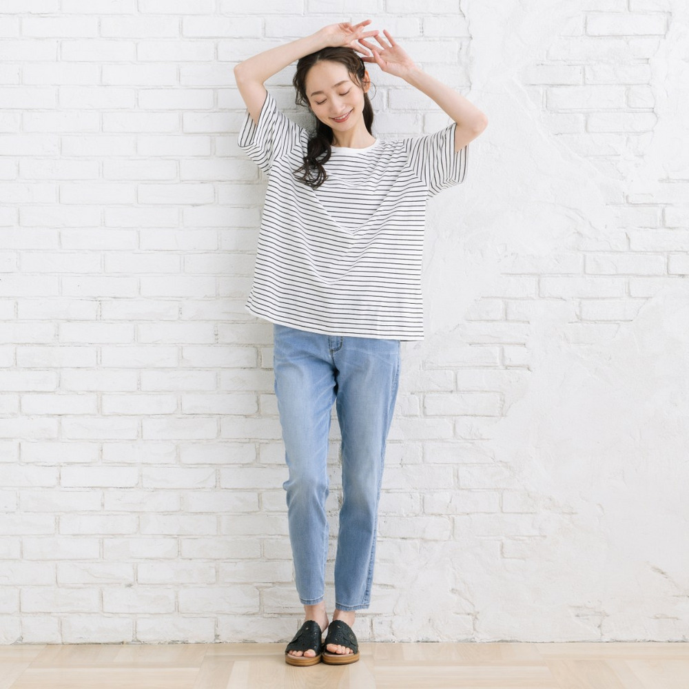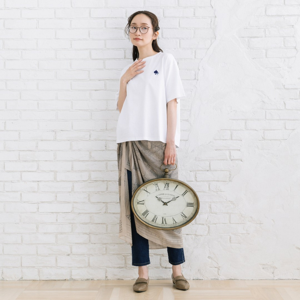 ブラウスやシャツを合わせたきれいめスタイルはもちろん、Tシャツやカットソーでラフに着こなすのもおすすめです。