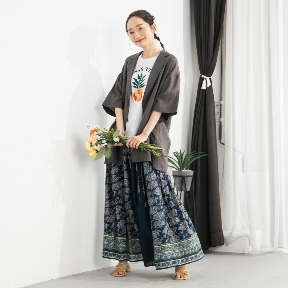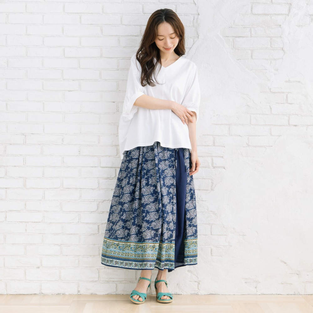 【柄で魅せる、大人のエスニックプリント切替スカート】