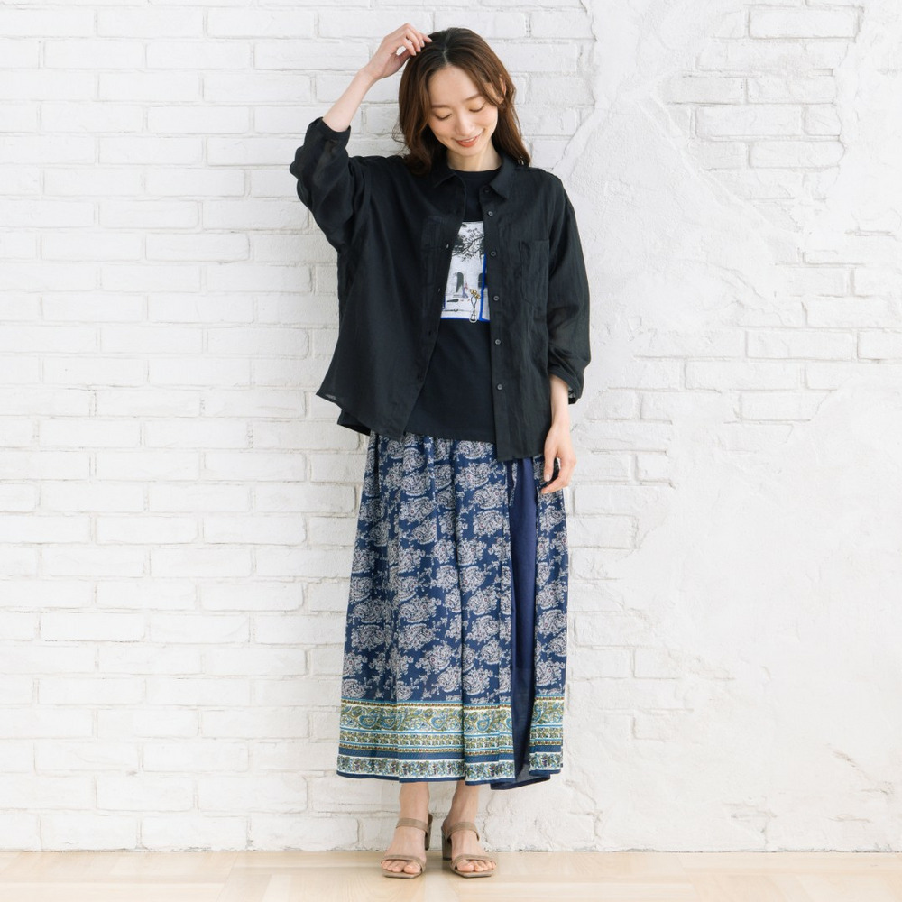 #大きいサイズコーデ #sabstreet #エスニックスカート #柄スカート #大人カジュアル #リラックスコーデ