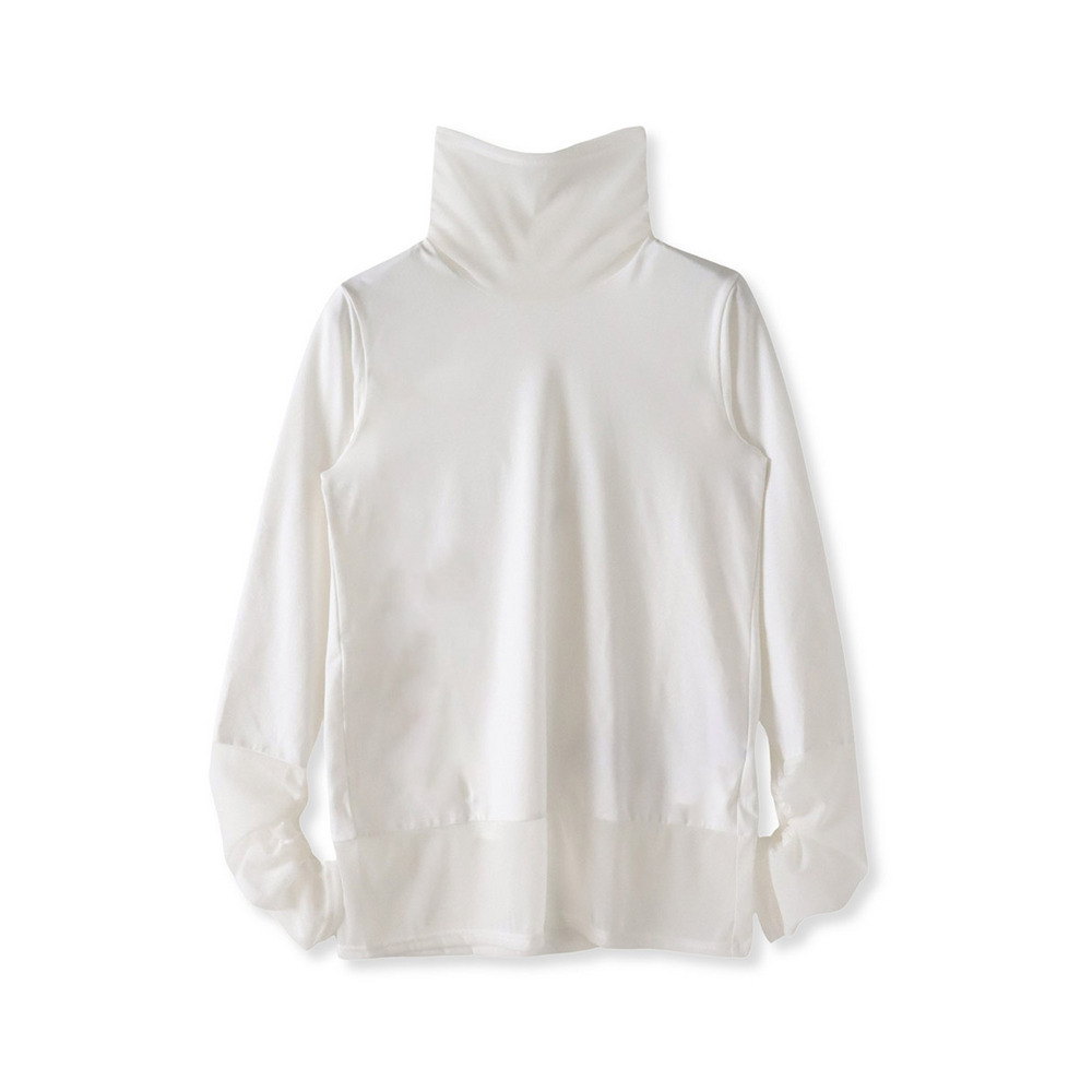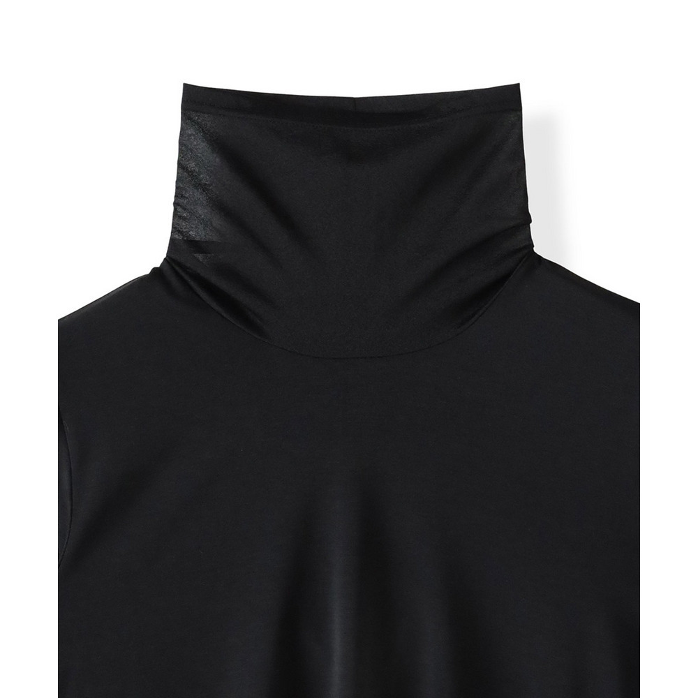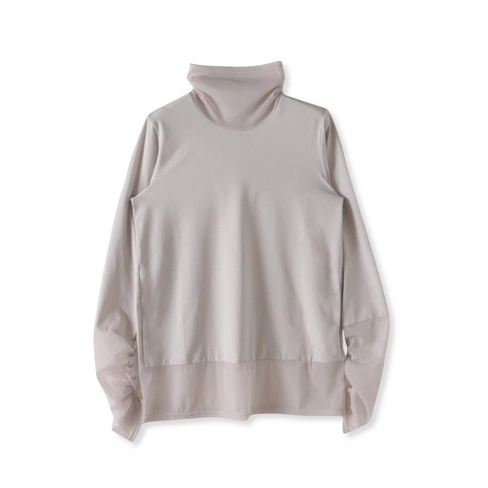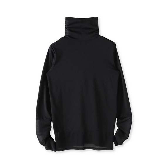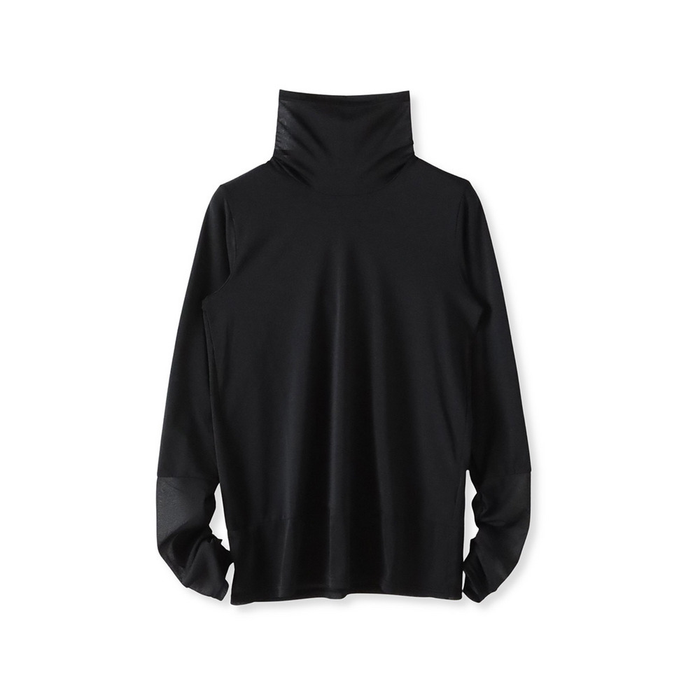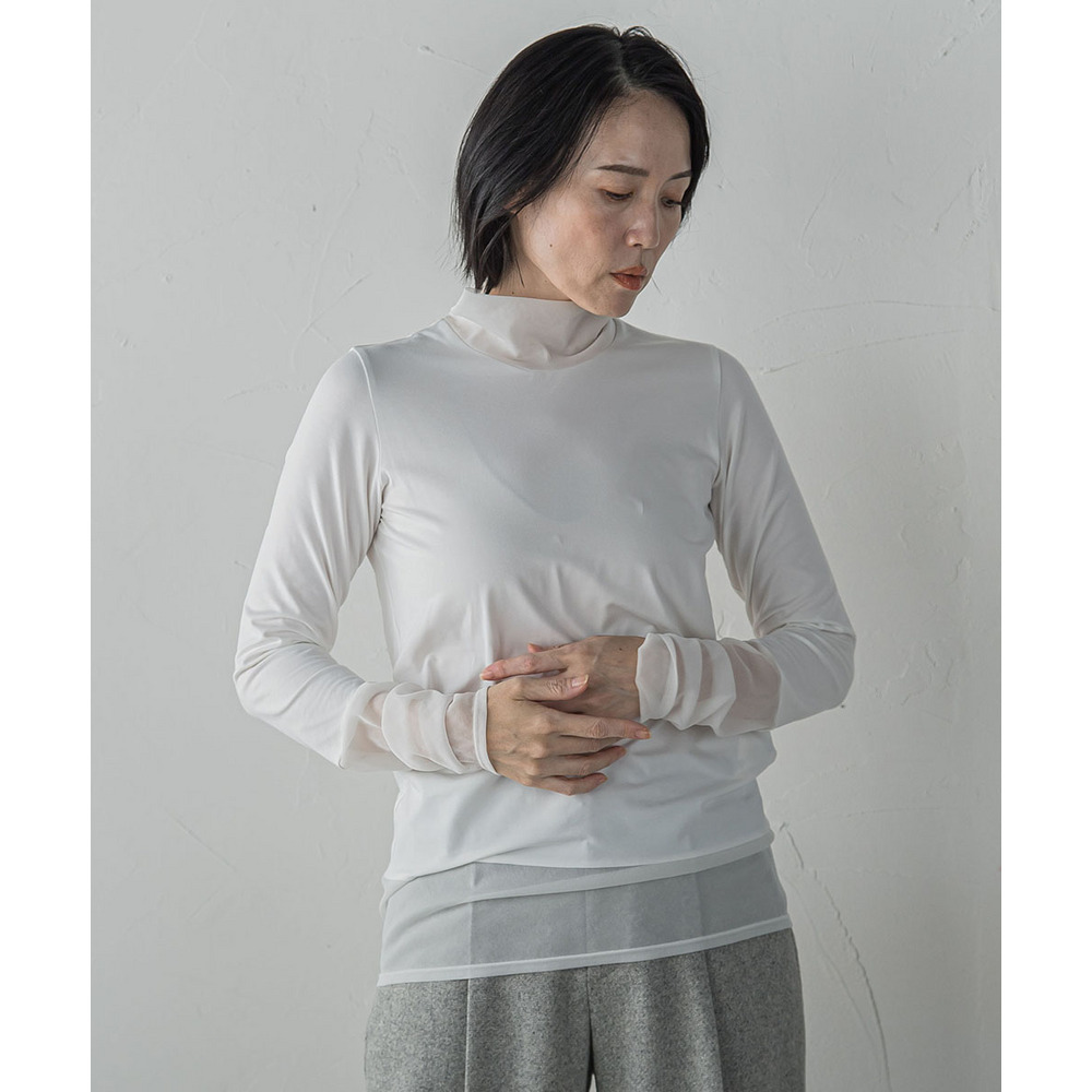 襟・袖口・裾にシアー素材をあしらった、インナーハイネックのカットソー。