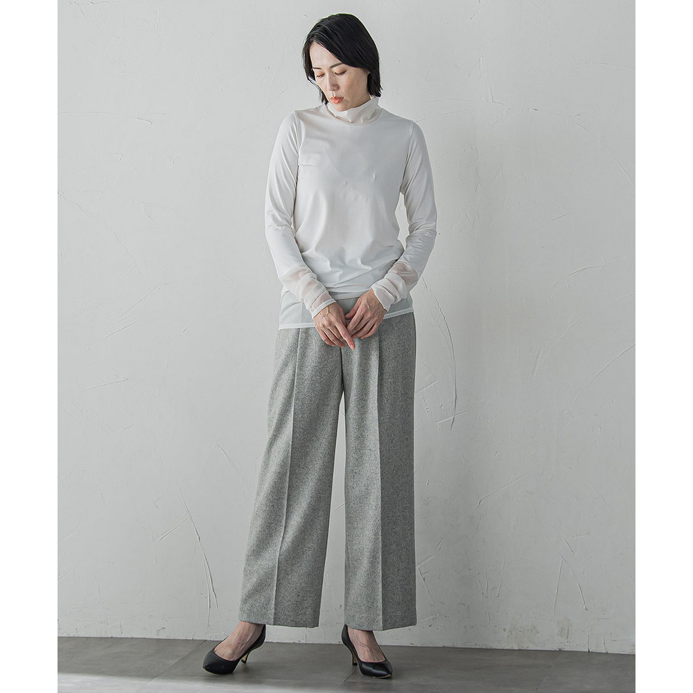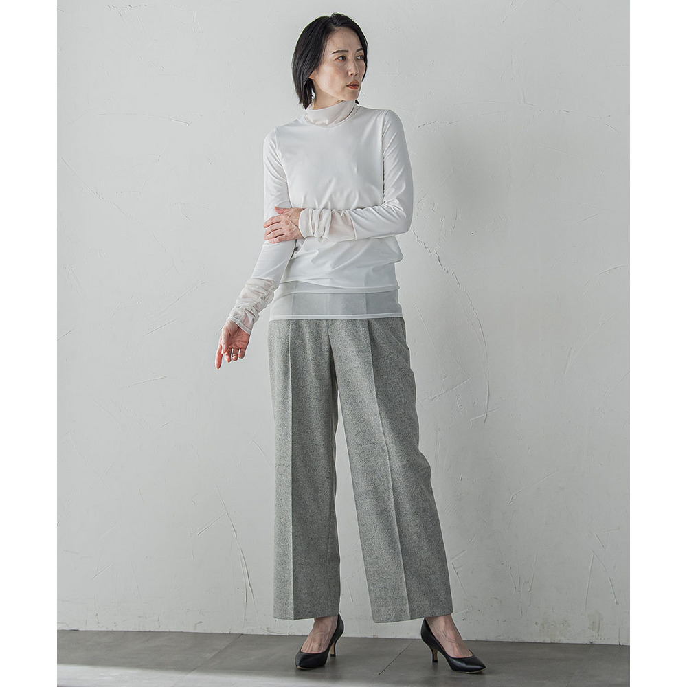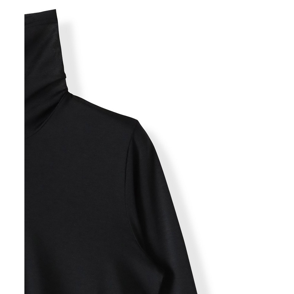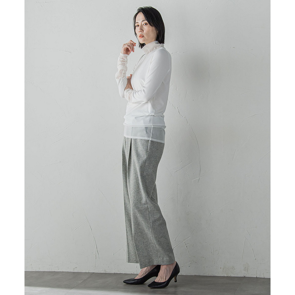 襟・袖口・裾にシアー素材をあしらった、インナーハイネックのカットソー。