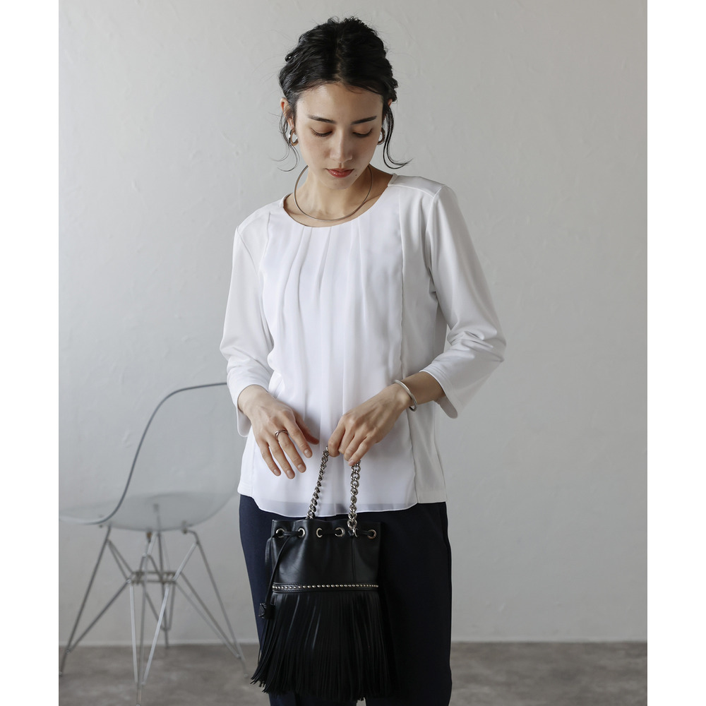 【洗える/清涼素材/吸水速乾/UVカット/ストレッチ/透け防止】高機能シフォン切替七分袖カットソー