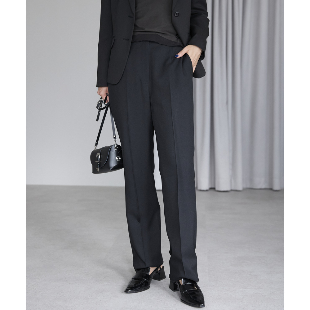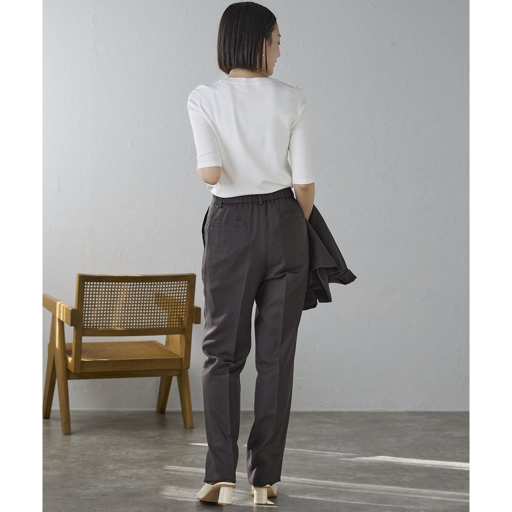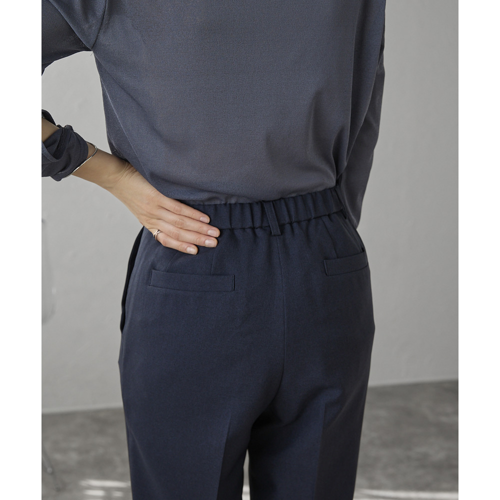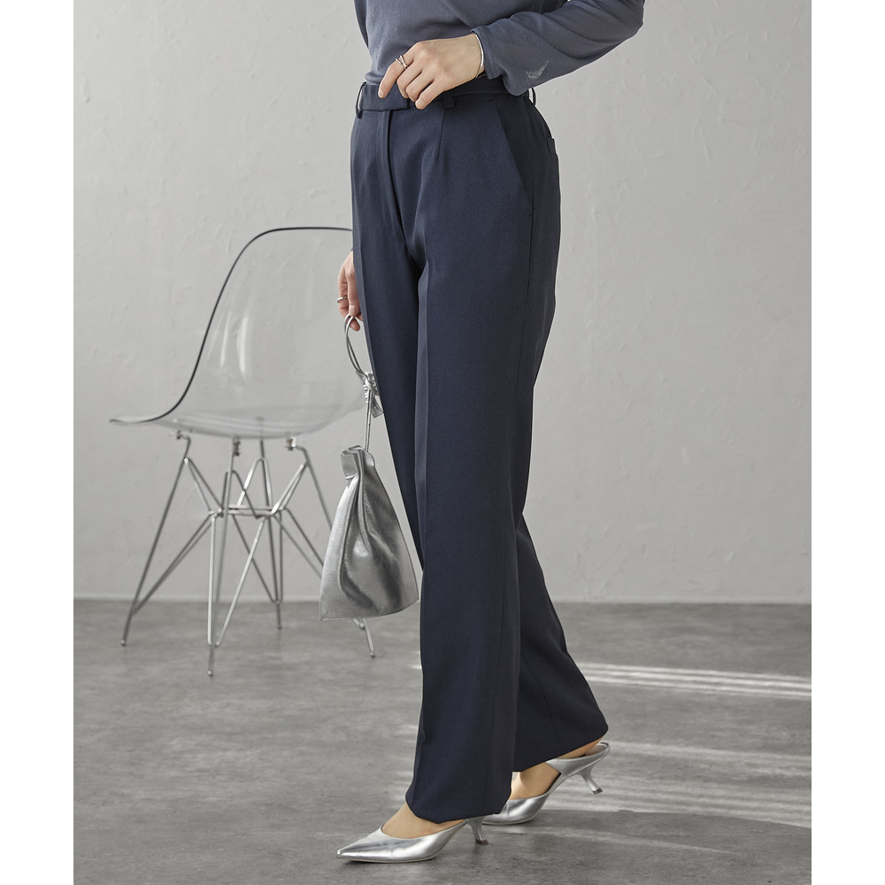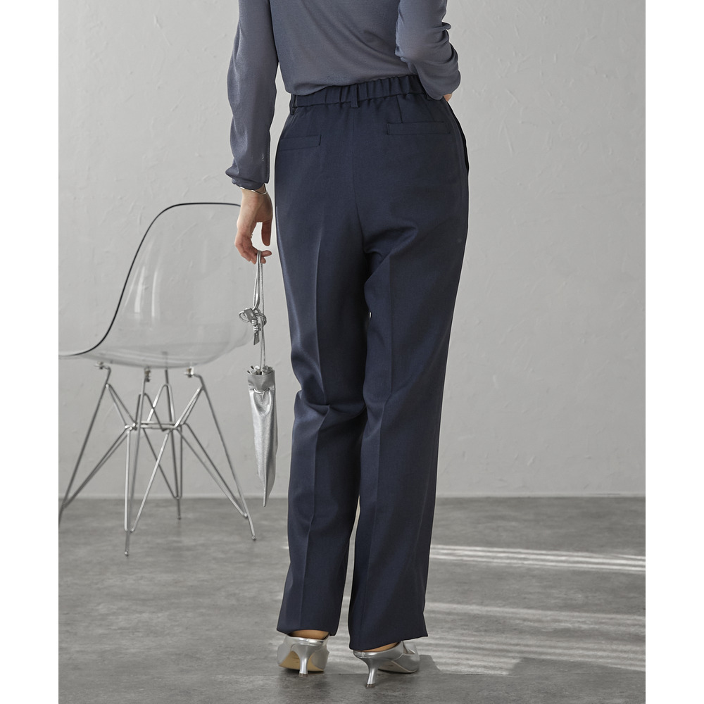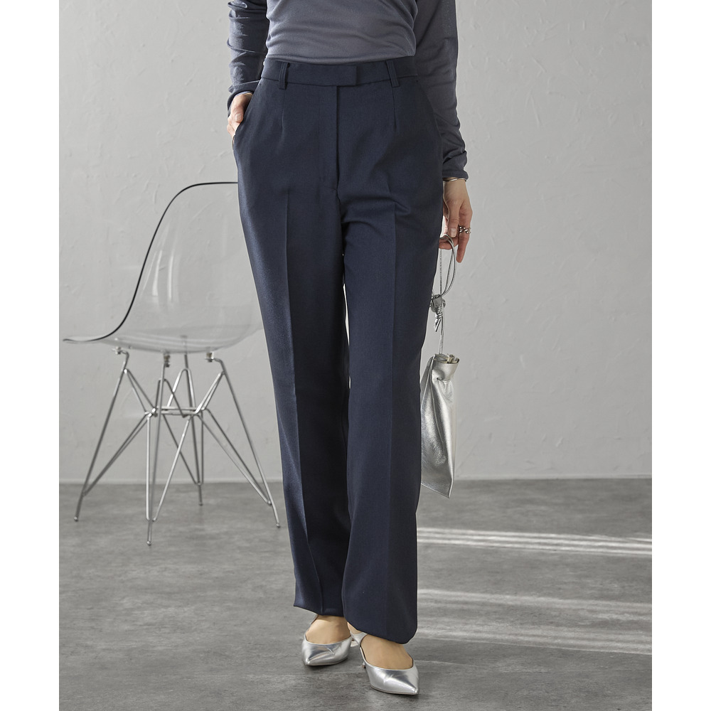 ベーシックなストレートラインが脚をすっきりと見せ、センタープレス入りで美脚効果も抜群。