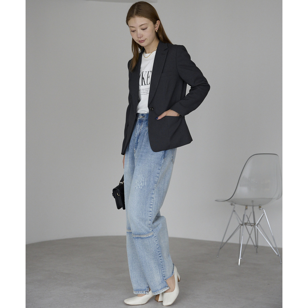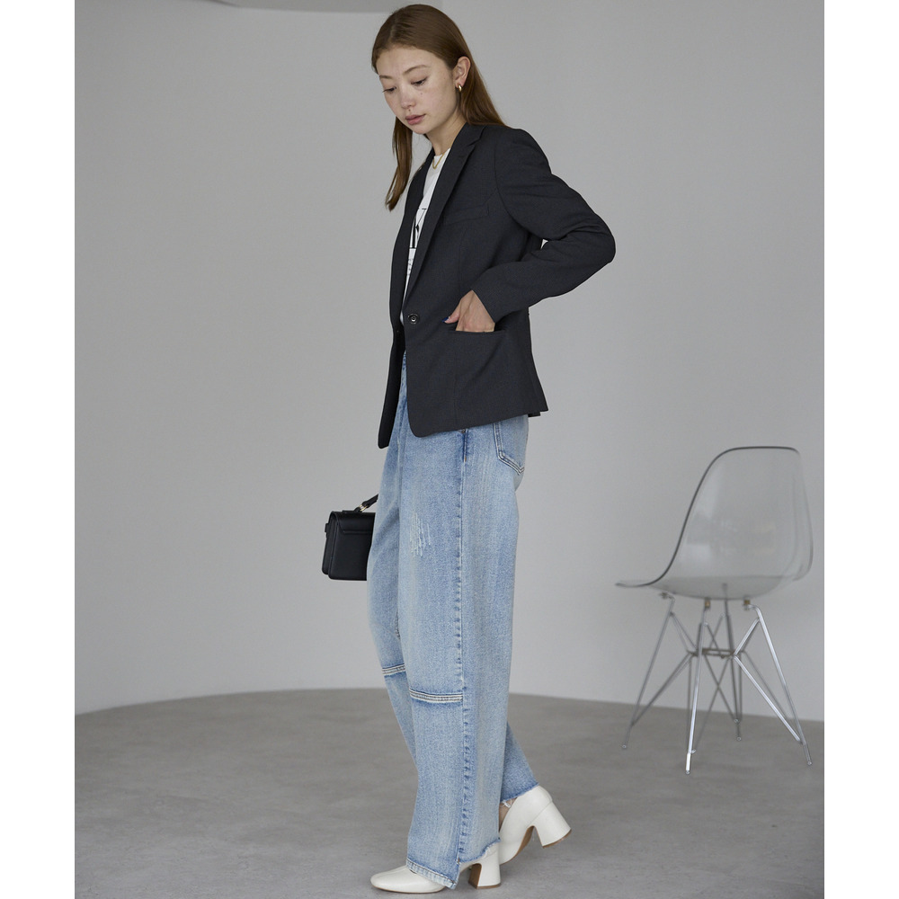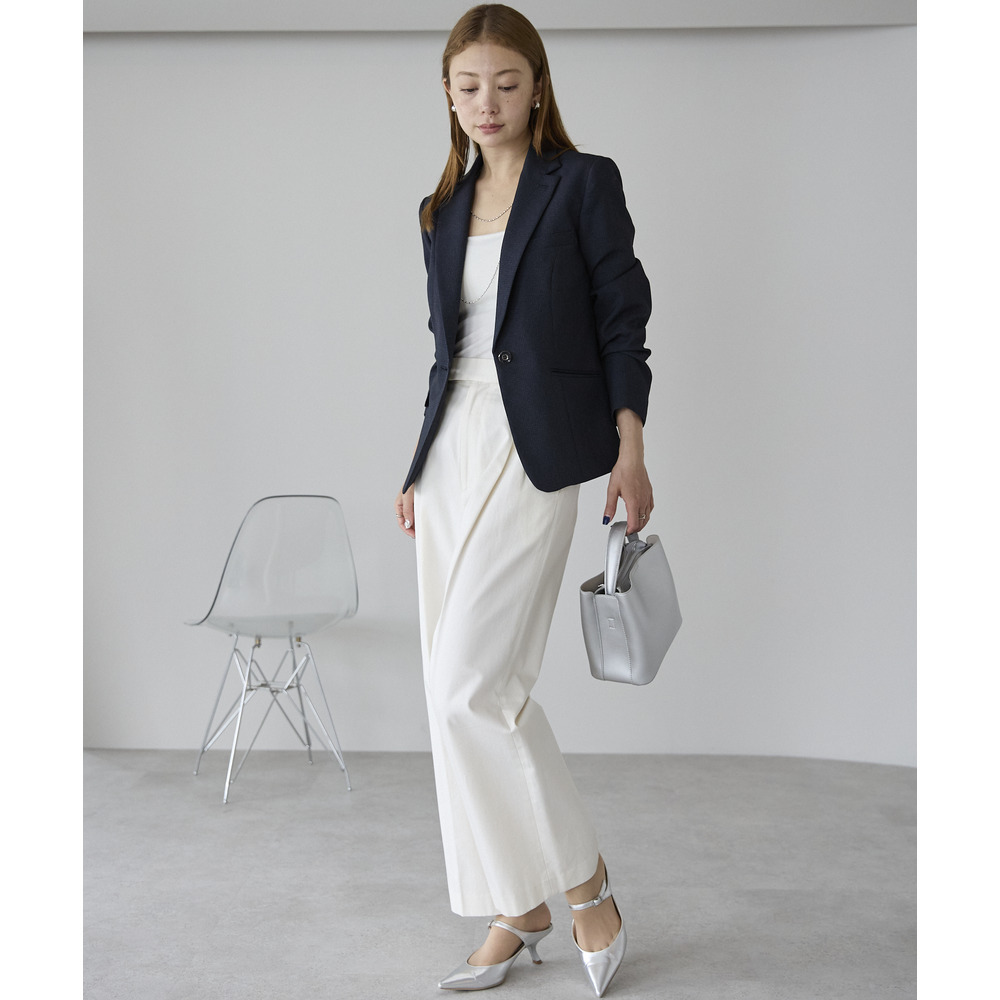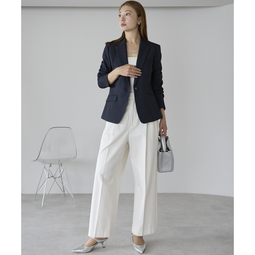 ベーシックなテーラードカラー×一つボタンで正統派でありながら今っぽいこなれ感を演出できるジャケット。