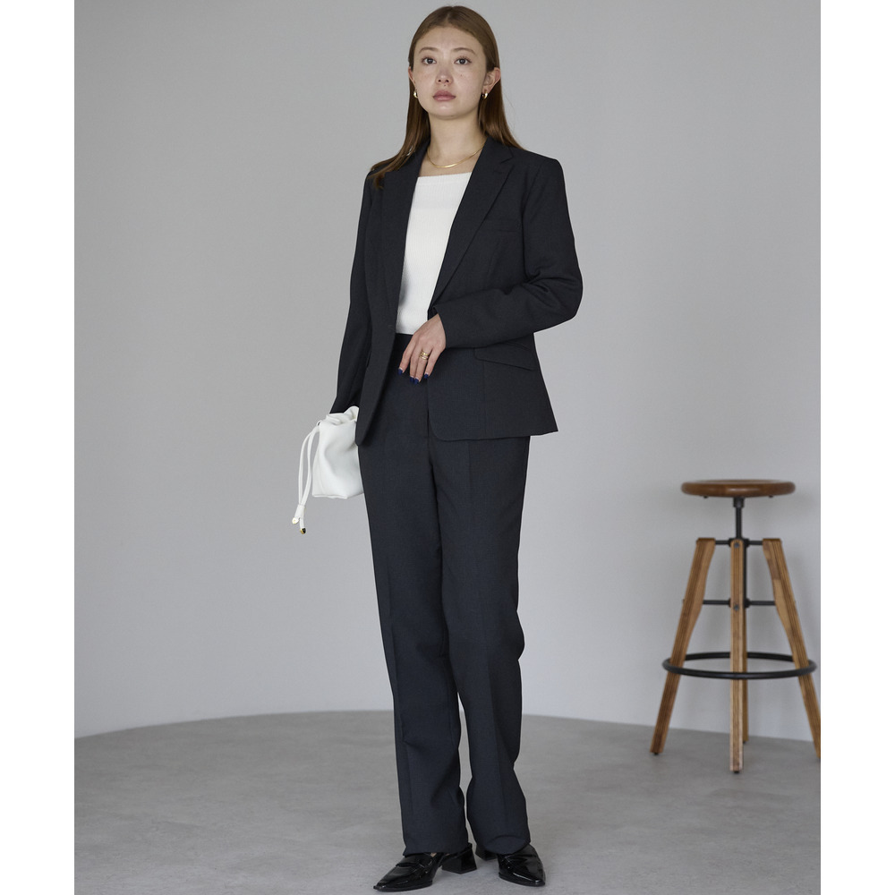 同素材のパンツとセットアップでスーツスタイルに。