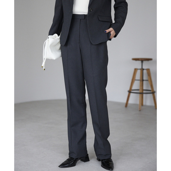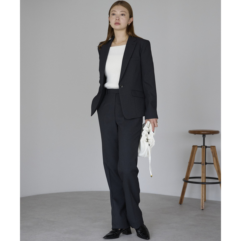 ◆同素材のジャケットとセットアップでスーツスタイルに。