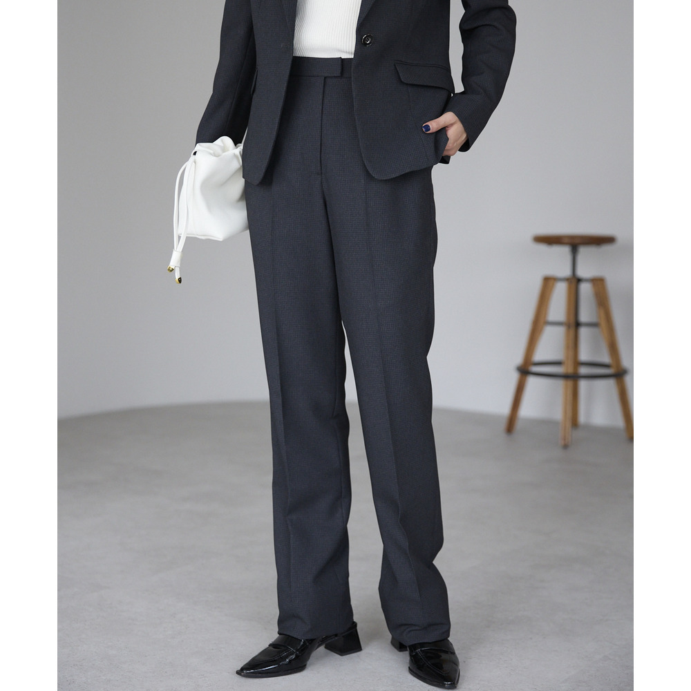 裾上げ不要 マイクロチェックストレートパンツ ※セットアップ可