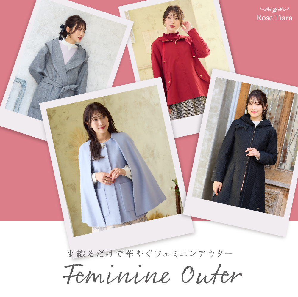 可愛いままで、生きていく。ローズティアラは、フェミニンな愛らしさと、大人のエレガンスを一度にまとう服。 「可愛い」をずっと手放さない、あなたのためのブランドです。