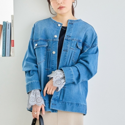 ノーカラーデニムジャケット