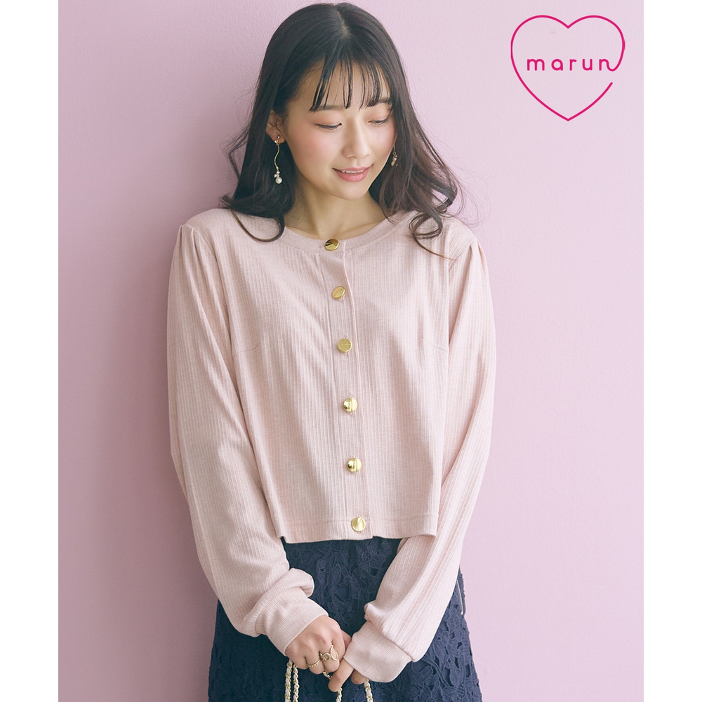 ノーカラーゴールドボタンカーディガン
