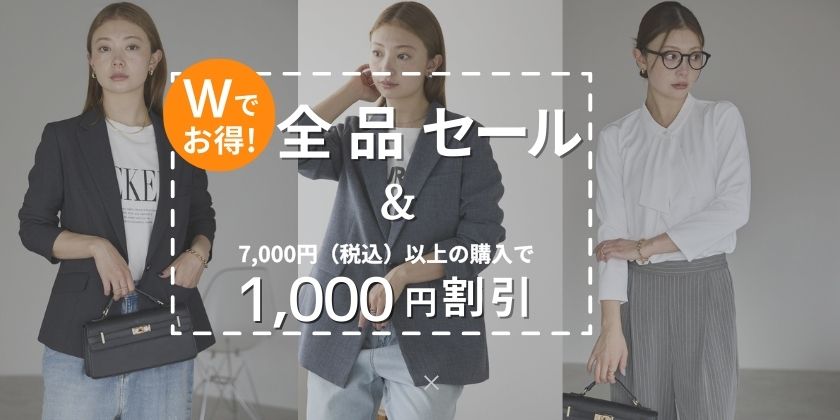 内容:期間中、対象ブランドの商品を1回の注文で7,000円(税込)以上購入すると、1,000円オフが適用されます。