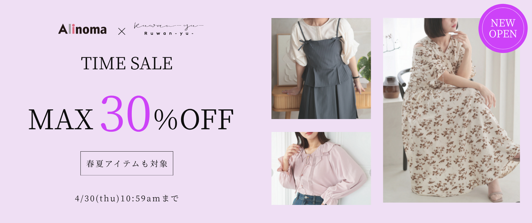 オープン記念としてルワンユーのアイテムが全商品30%OFFに。